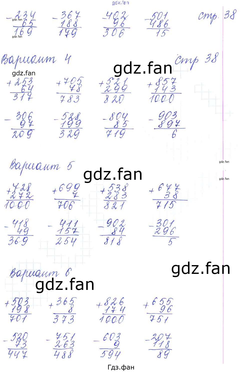 ГДЗ - онлайн ответы на 38 (Вариант 4, Вариант 5, Вариант 6) Математика для 3 класса к Контрольным работам УМК Рудницкая 2017