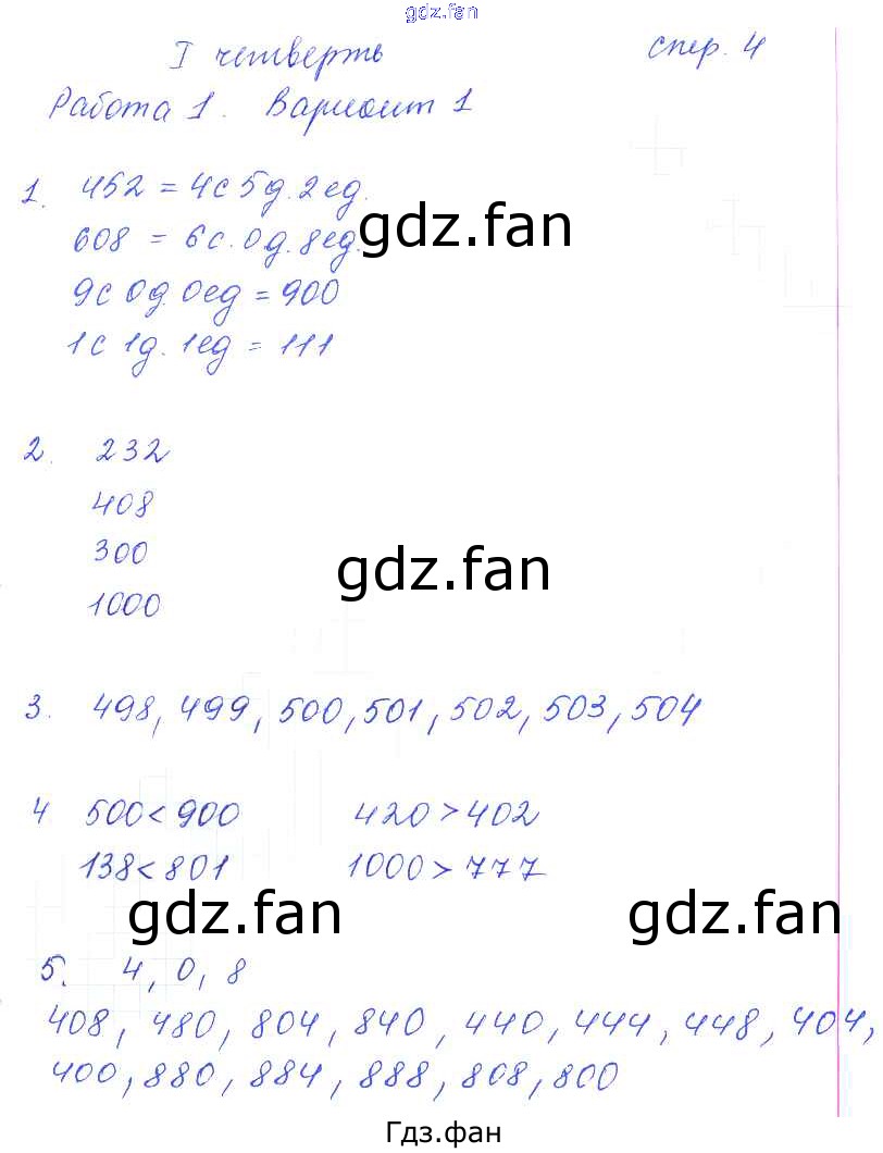 Проверка домашнего задания всегда занимает большое количество времени. На помощь приходит ГДЗ фан по Математике третьего класса. Здесь собраны популярные ответы на 4 (четверть 1, работа 1, вариант 1) Математика 3 класс тетрадь для контрольных работ Рудницкая В.Н.