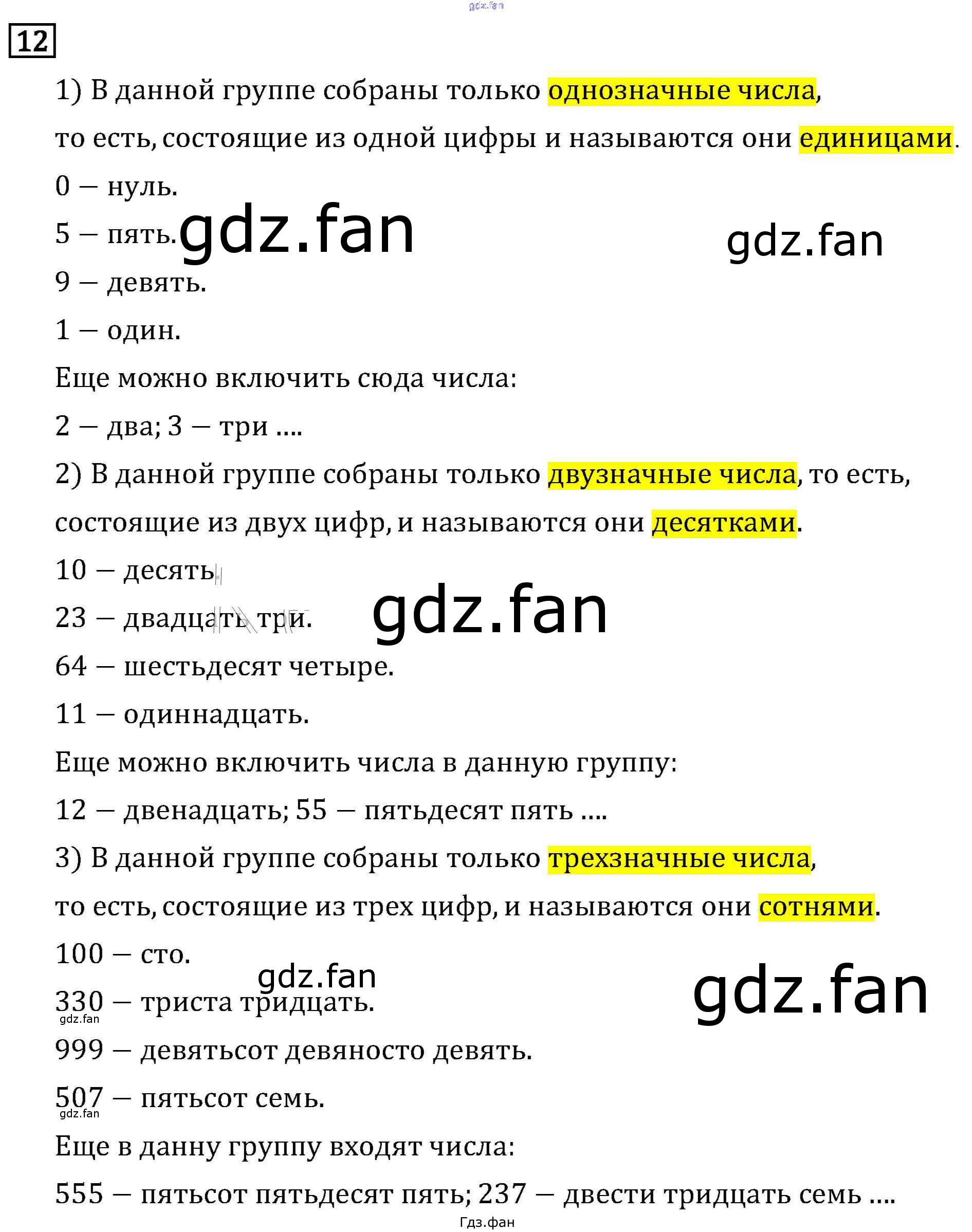 ГДЗ - онлайн ответы на 12 (стр. 7) Математика для 3 класса к Учебнику Начальная школа XXI века Рудницкая, Юдачева 2016