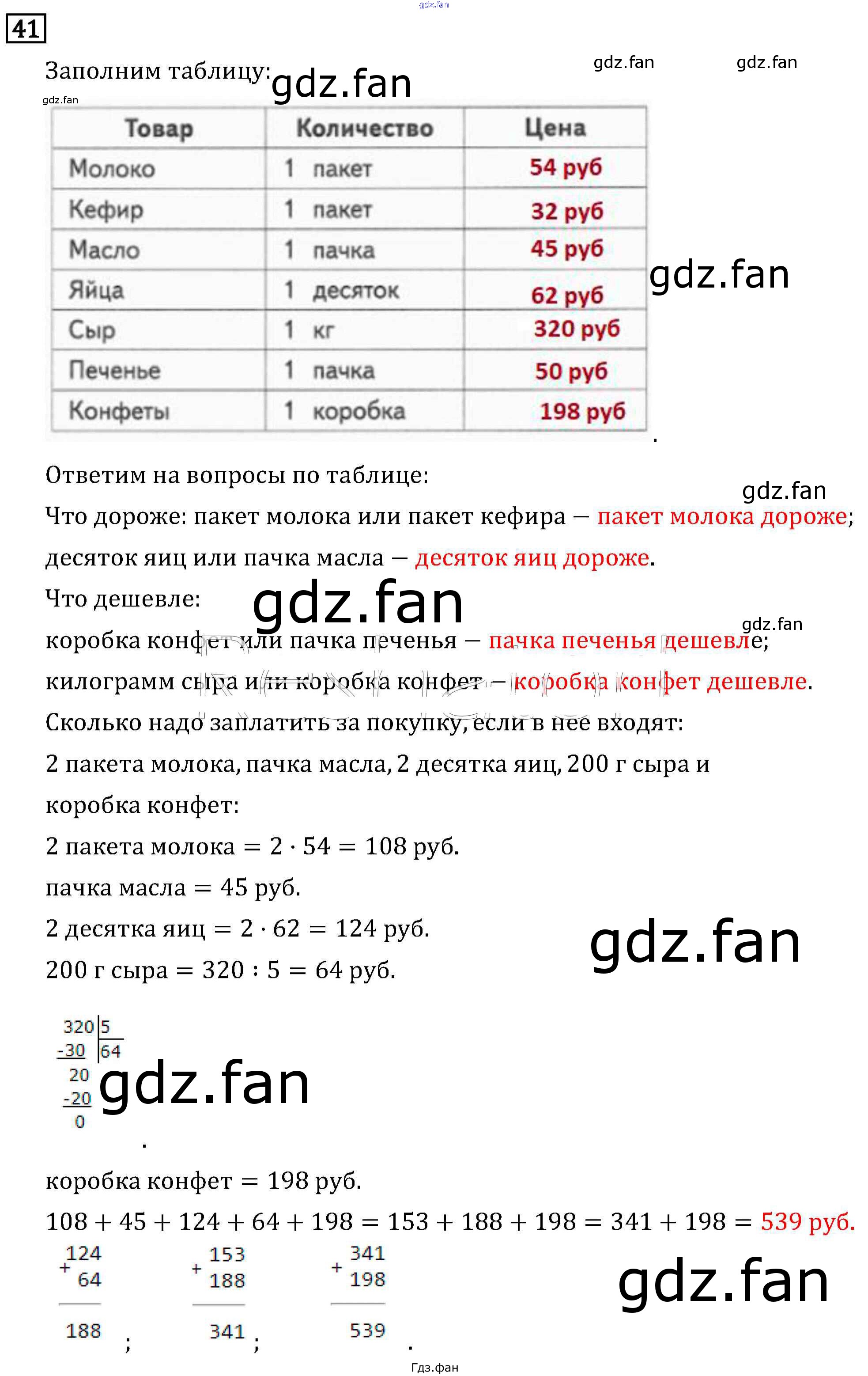 Проверка домашнего задания всегда занимает большое количество времени. На помощь приходит ГДЗ фан по Математике третьего класса. Здесь собраны популярные ответы на 41 (стр. 141) Математика 3 класс Рудницкая В.Н.