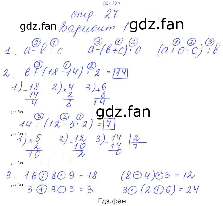 Проверка домашнего задания всегда занимает большое количество времени. На помощь приходит ГДЗ фан по Математике третьего класса. Здесь собраны популярные ответы на 27 (Порядок выполнения действий Вариант 1 № 1, 2, 3) Математика 3 класс самостоятельные работы Самсонова Л.Ю.