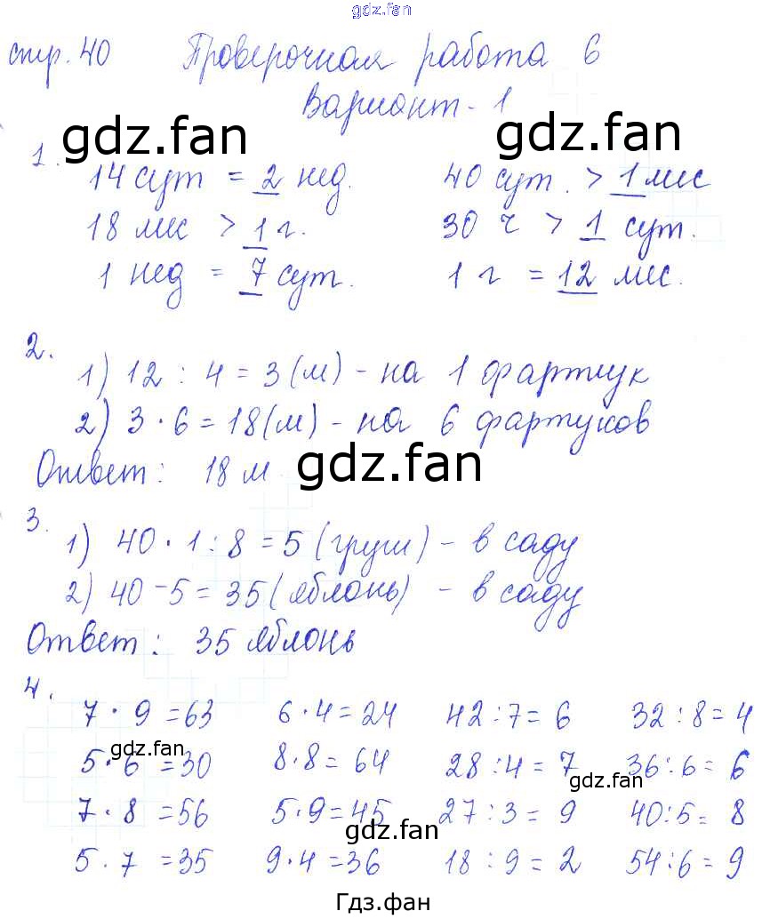 Проверка домашнего задания всегда занимает большое количество времени. На помощь приходит ГДЗ фан по Математике третьего класса. Здесь собраны популярные ответы на 40 (работа 6, вариант 1) Математика 3 класс проверочные работы Волкова С.И.