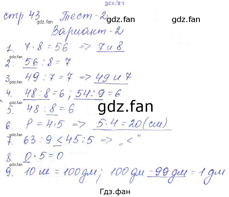 Проверка домашнего задания всегда занимает большое количество времени. На помощь приходит ГДЗ фан по Математике третьего класса. Здесь собраны популярные ответы на 43 (тест 1, вариант 2) Математика 3 класс проверочные работы Волкова С.И.