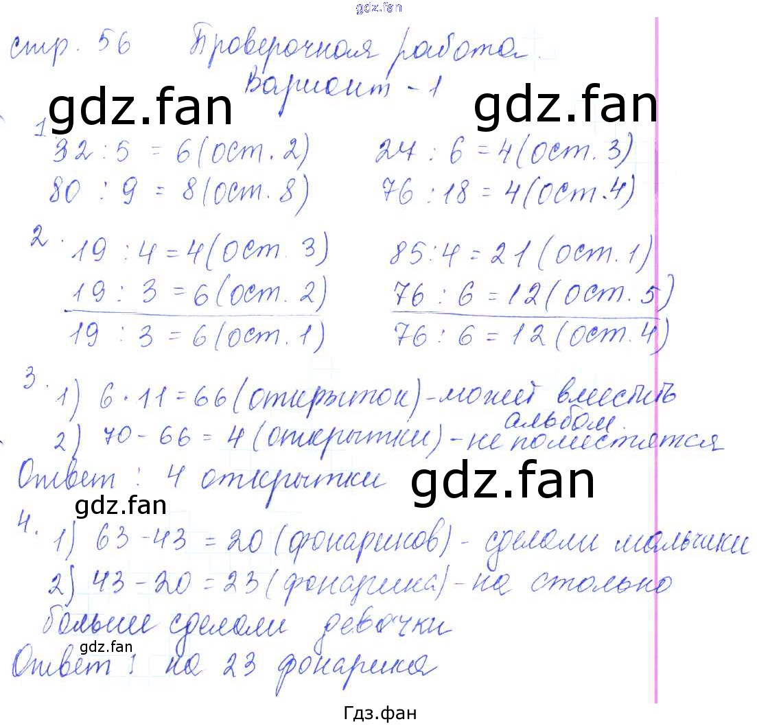 Проверка домашнего задания всегда занимает большое количество времени. На помощь приходит ГДЗ фан по Математике третьего класса. Здесь собраны популярные ответы на 56 (работа, вариант 1) Математика 3 класс проверочные работы Волкова С.И.