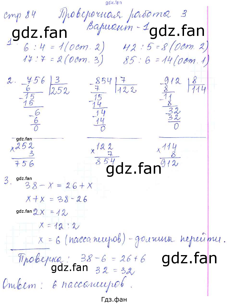 Проверка домашнего задания всегда занимает большое количество времени. На помощь приходит ГДЗ фан по Математике третьего класса. Здесь собраны популярные ответы на 84 (работа 3, вариант 1) Математика 3 класс проверочные работы Волкова С.И.
