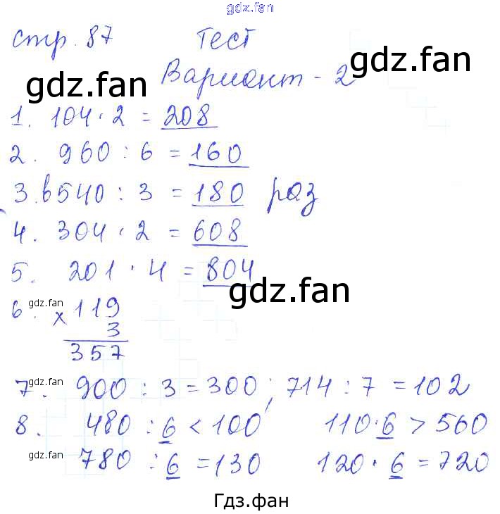 Проверка домашнего задания всегда занимает большое количество времени. На помощь приходит ГДЗ фан по Математике третьего класса. Здесь собраны популярные ответы на 87 (тест, вариант 2) Математика 3 класс проверочные работы Волкова С.И.
