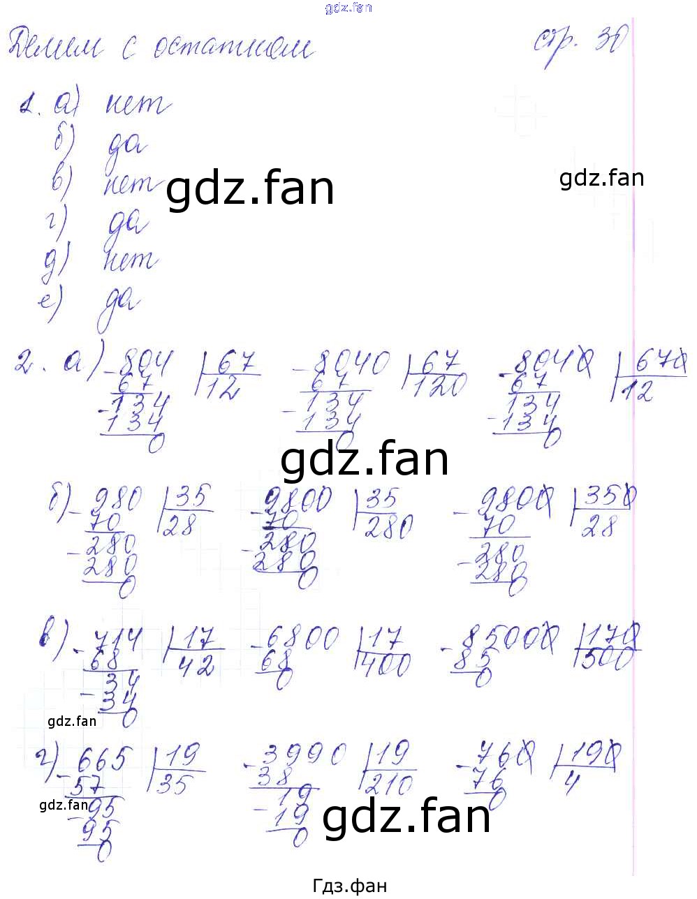 Проверка домашнего задания всегда занимает большое количество времени. На помощь приходит ГДЗ фан по Математике четвертого класса. Здесь собраны популярные ответы на 30 (Делим с остатком № 1, 2) Математика 4 класс рабочая тетрадь Башмаков М.И.