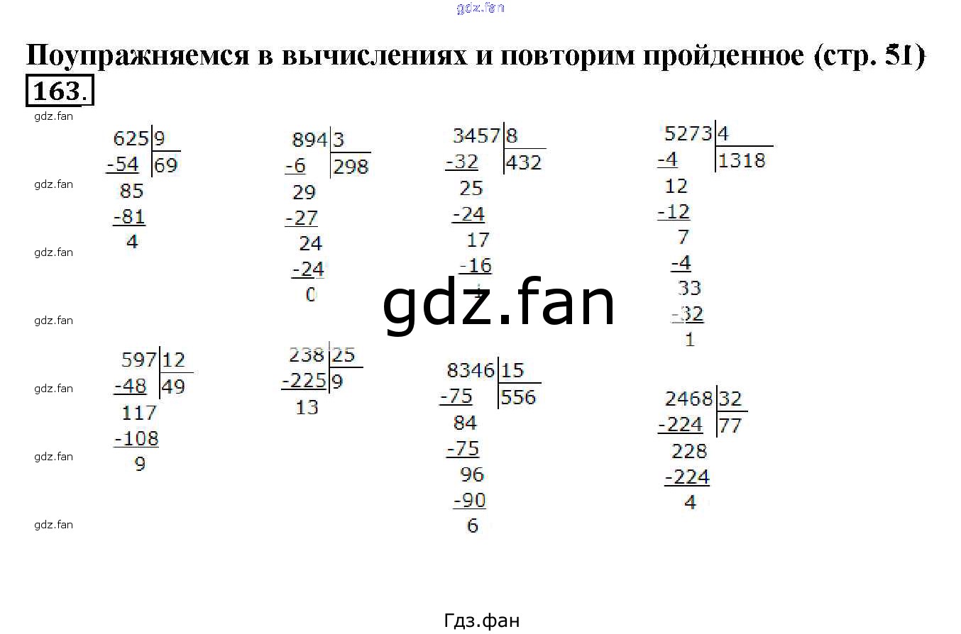 Проверка домашнего задания всегда занимает большое количество времени. На помощь приходит ГДЗ фан по Математике четвертого класса. Здесь собраны популярные ответы на 163 (стр. 51) Математика 4 класс Чекин А.Л.