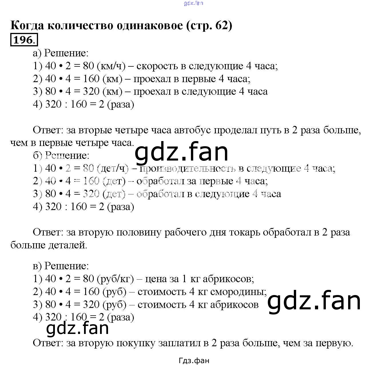 Проверка домашнего задания всегда занимает большое количество времени. На помощь приходит ГДЗ фан по Математике четвертого класса. Здесь собраны популярные ответы на 196 (стр. 62) Математика 4 класс Чекин А.Л.