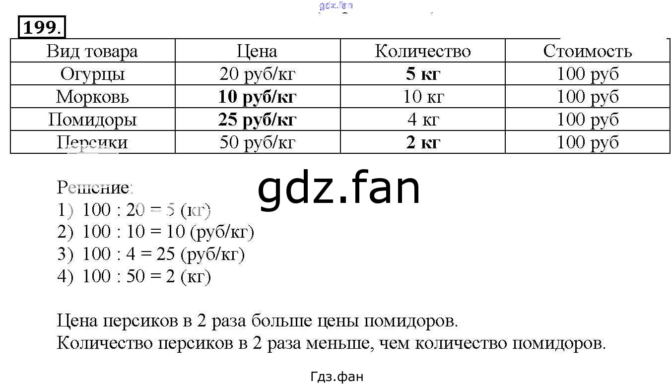 ГДЗ - онлайн ответы на 199 (стр. 63) Математика для 4 класса к Учебнику Перспективная начальная школа Чекин 2012