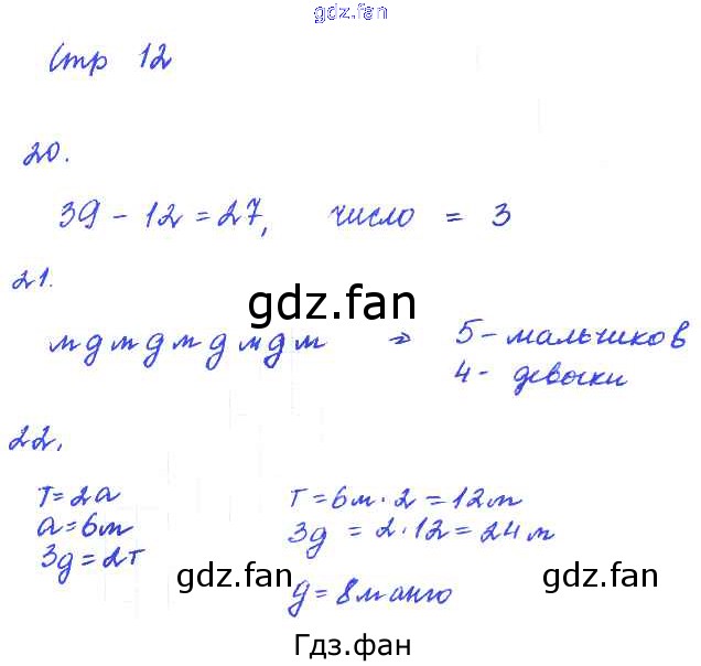 Проверка домашнего задания всегда занимает большое количество времени. На помощь приходит ГДЗ фан по Математике четвертого класса. Здесь собраны популярные ответы на 12 (№ 20, 21, 22) Математика 4 класс тетрадь для самостоятельной работы Школьная олимпиада Чуракова Р.Г.