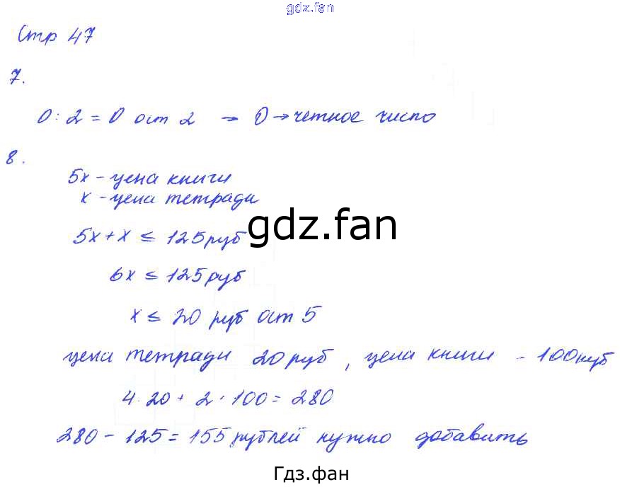 Проверка домашнего задания всегда занимает большое количество времени. На помощь приходит ГДЗ фан по Математике четвертого класса. Здесь собраны популярные ответы на 47 (№ 7, 8) Математика 4 класс тетрадь для самостоятельной работы Школьная олимпиада Чуракова Р.Г.