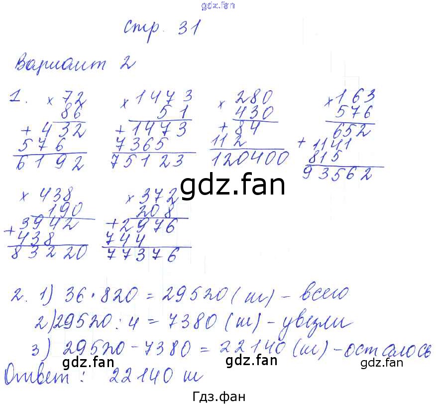Проверка домашнего задания всегда занимает большое количество времени. На помощь приходит ГДЗ фан по Математике четвертого класса. Здесь собраны популярные ответы на 31 (умножение на двузначное и на трёхзначное число, вариант 2) Математика 4 класс контрольные работы Рудницкая В.Н. (к уч. Моро)