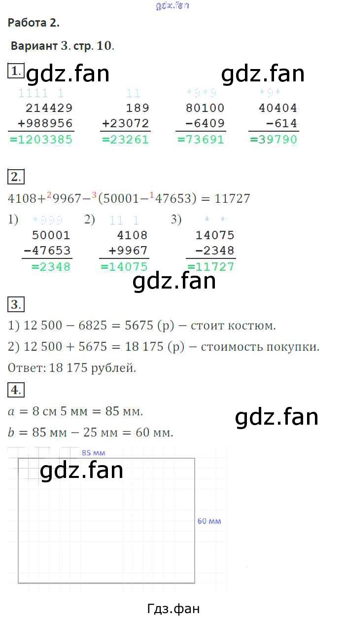 Проверка домашнего задания всегда занимает большое количество времени. На помощь приходит ГДЗ фан по Математике четвертого класса. Здесь собраны популярные ответы на 10 (Вариант 3. № 1, 2, 3, 4) Математика 4 класс тетрадь для контрольных работ Рудницкая В.Н.