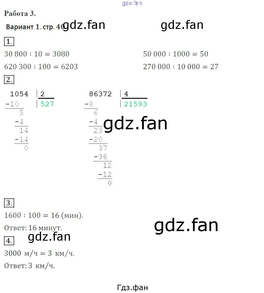 Проверка домашнего задания всегда занимает большое количество времени. На помощь приходит ГДЗ фан по Математике четвертого класса. Здесь собраны популярные ответы на 40 (Работа 3. Вариант 1 № 1, 2, 3, 4) Математика 4 класс тетрадь для контрольных работ Рудницкая В.Н.