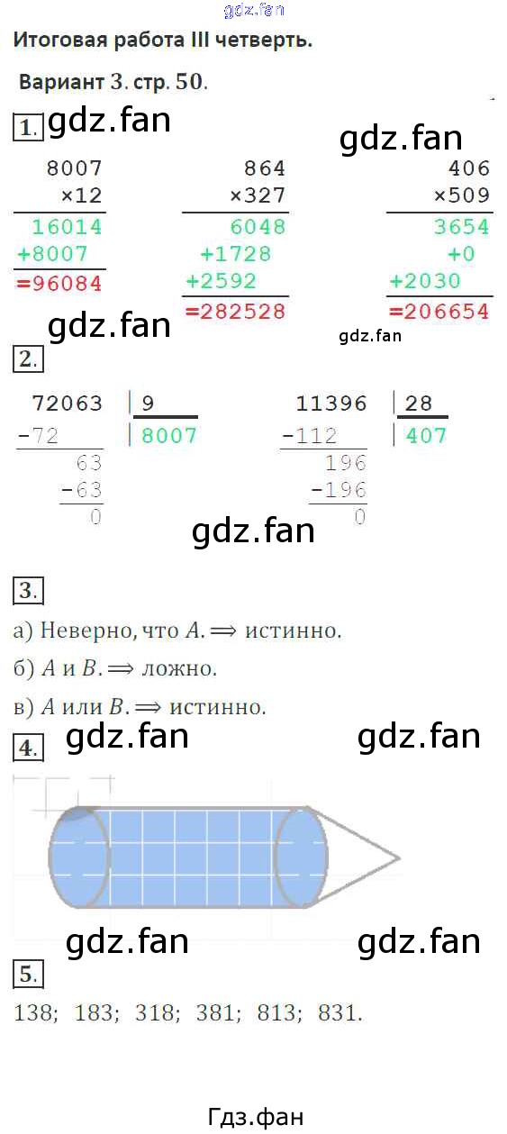 Проверка домашнего задания всегда занимает большое количество времени. На помощь приходит ГДЗ фан по Математике четвертого класса. Здесь собраны популярные ответы на 50 (Вариант 3 № 1, 2, 3, 4, 5) Математика 4 класс тетрадь для контрольных работ Рудницкая В.Н.