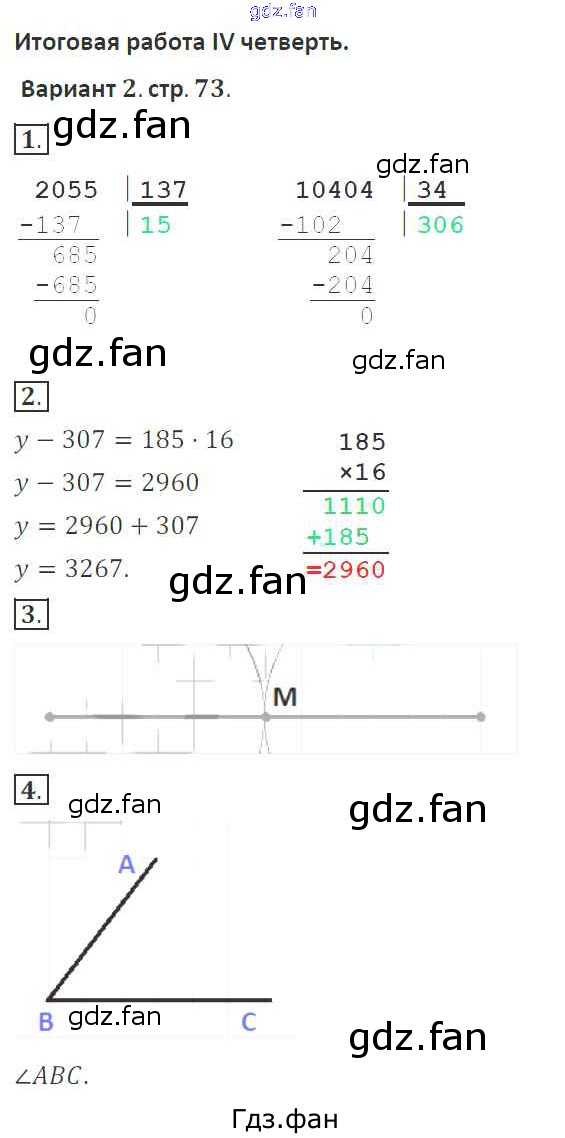 Проверка домашнего задания всегда занимает большое количество времени. На помощь приходит ГДЗ фан по Математике четвертого класса. Здесь собраны популярные ответы на 73 (Вариант 2 № 1, 2, 3, 4) Математика 4 класс тетрадь для контрольных работ Рудницкая В.Н.