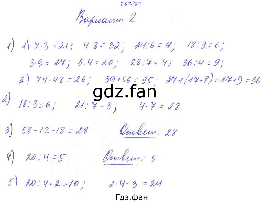 Проверка домашнего задания всегда занимает большое количество времени. На помощь приходит ГДЗ фан по Математике второго класса. Здесь собраны популярные ответы на Вариант 2 (стр. 36) Математика 1-4 классы контрольные работы Волкова С.И.