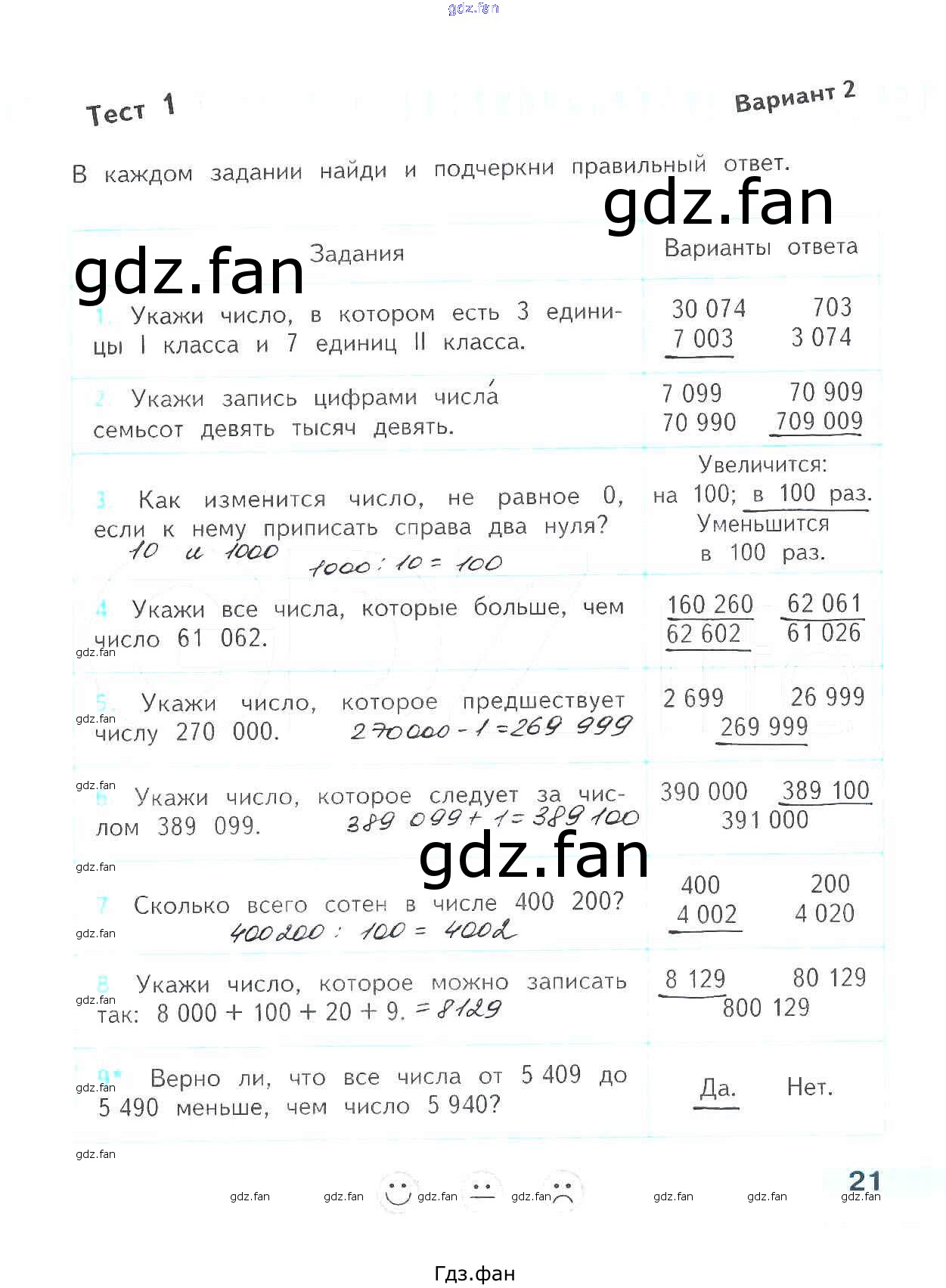 Проверка домашнего задания всегда занимает большое количество времени. На помощь приходит ГДЗ фан по Математике четвертого класса. Здесь собраны популярные ответы на 21 (Вариант 2 № 1, 2, 3, 4, 5, 6, 7, 8, 9) Математика 4 класс проверочные работы Волкова С.И.