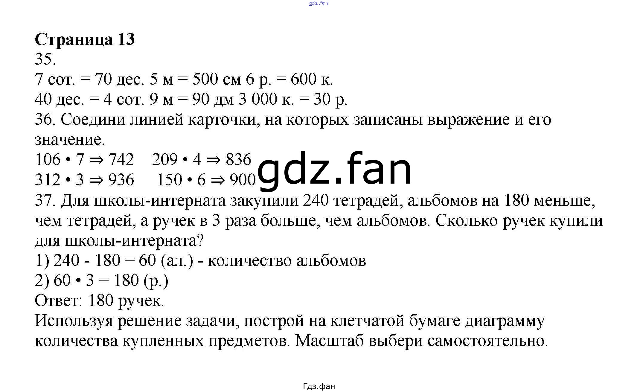 Проверка домашнего задания всегда занимает большое количество времени. На помощь приходит ГДЗ фан по Математике четвертого класса. Здесь собраны популярные ответы на 13 (№ 35, 36, 37) Математика 4 класс рабочая тетрадь Волкова С.И.