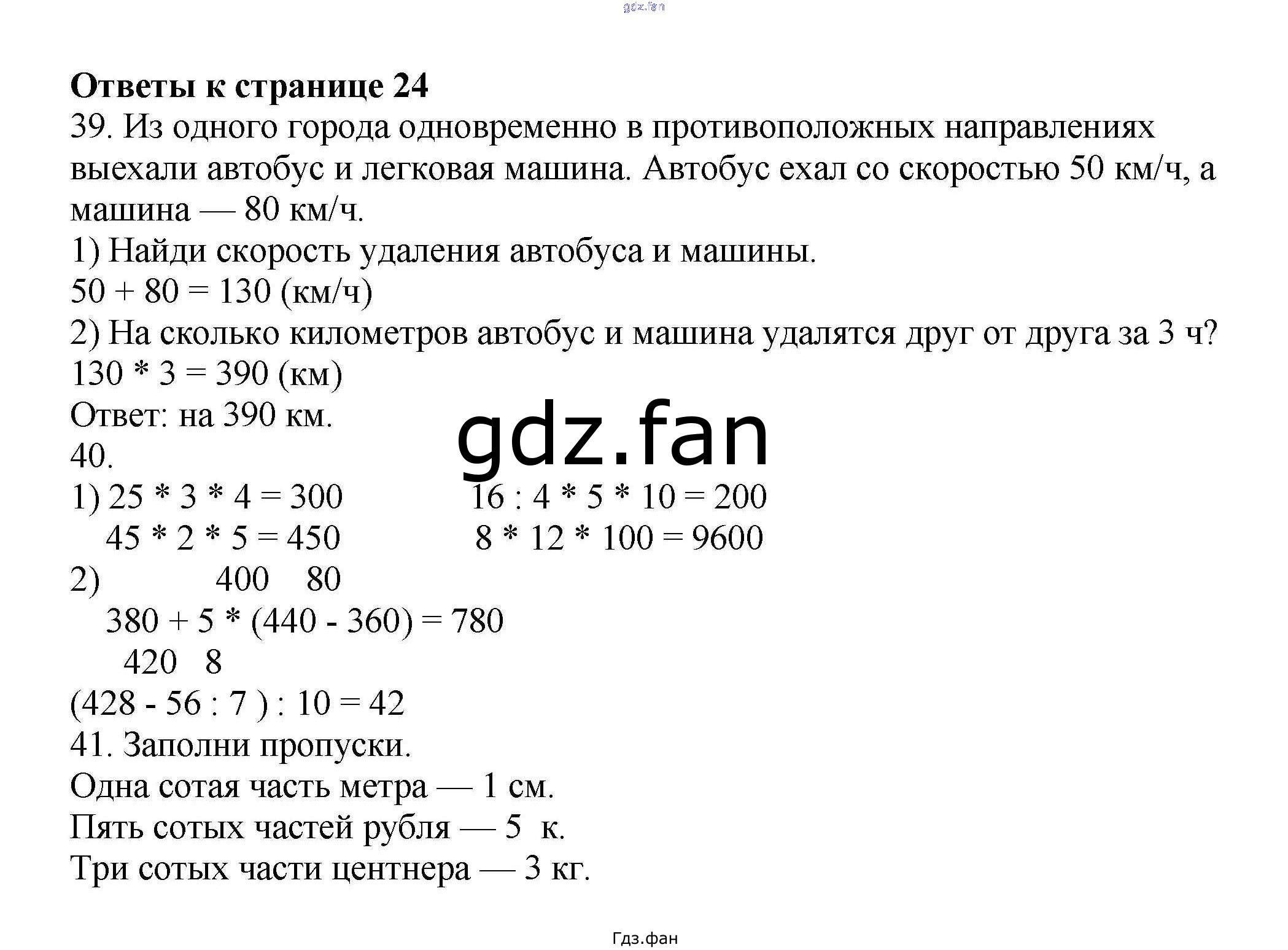 Проверка домашнего задания всегда занимает большое количество времени. На помощь приходит ГДЗ фан по Математике четвертого класса. Здесь собраны популярные ответы на 24 (№ 39, 40, 41) Математика 4 класс рабочая тетрадь Волкова С.И.