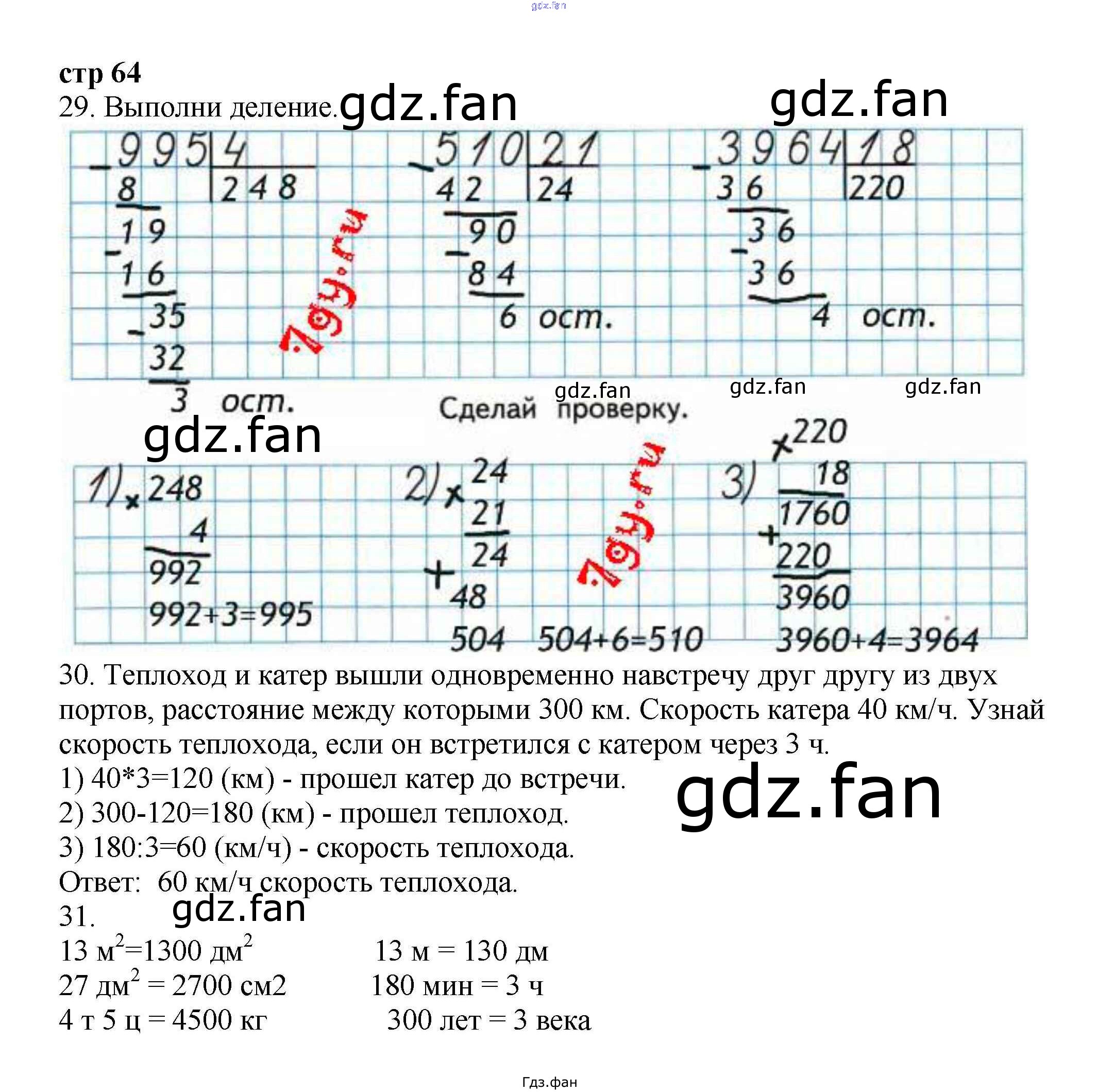 Проверка домашнего задания всегда занимает большое количество времени. На помощь приходит ГДЗ фан по Математике четвертого класса. Здесь собраны популярные ответы на 64 (№ 29, 30, 31) Математика 4 класс рабочая тетрадь Волкова С.И.