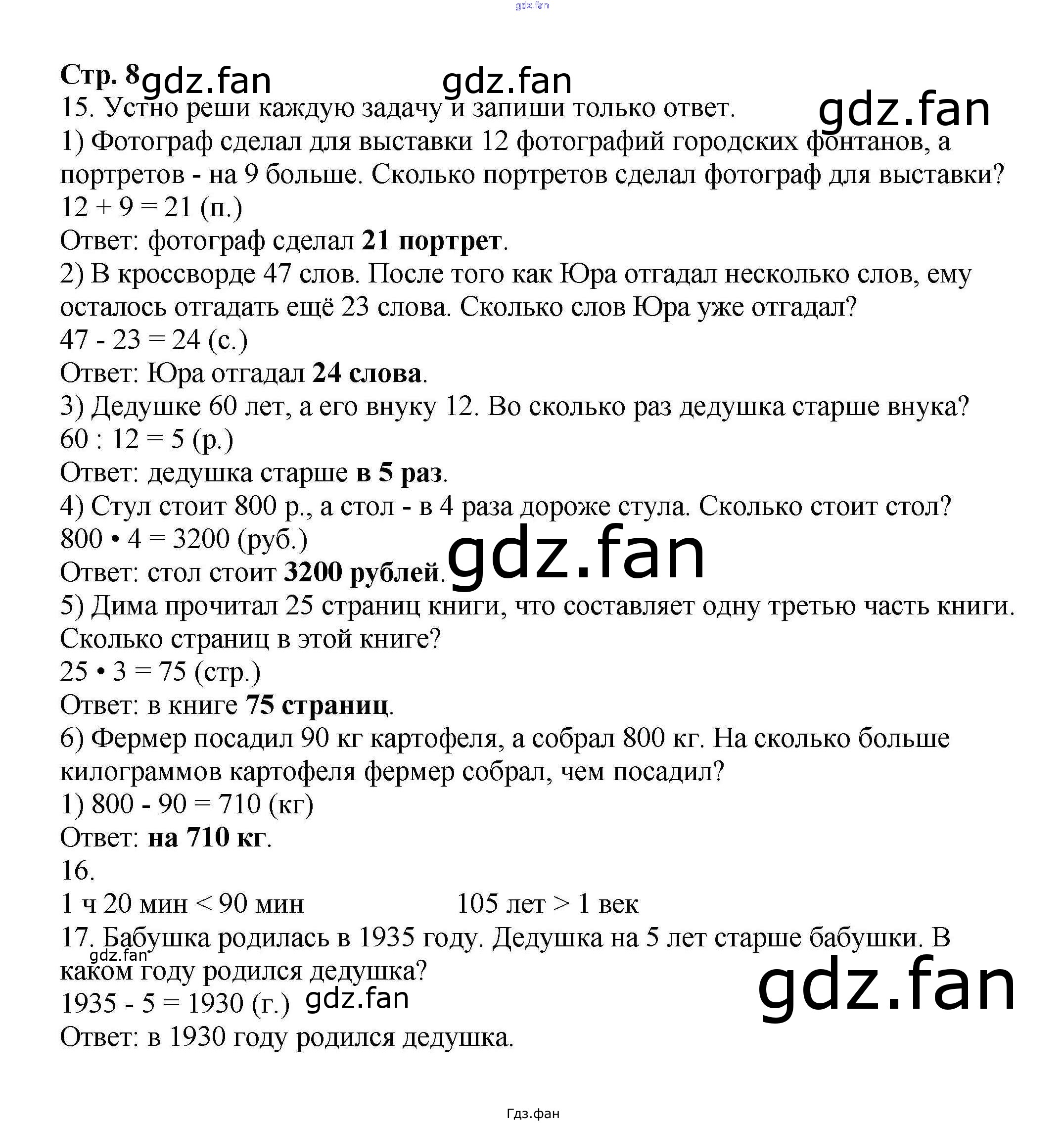 Проверка домашнего задания всегда занимает большое количество времени. На помощь приходит ГДЗ фан по Математике четвертого класса. Здесь собраны популярные ответы на 8 (№ 15, 16, 17) Математика 4 класс рабочая тетрадь Волкова С.И.