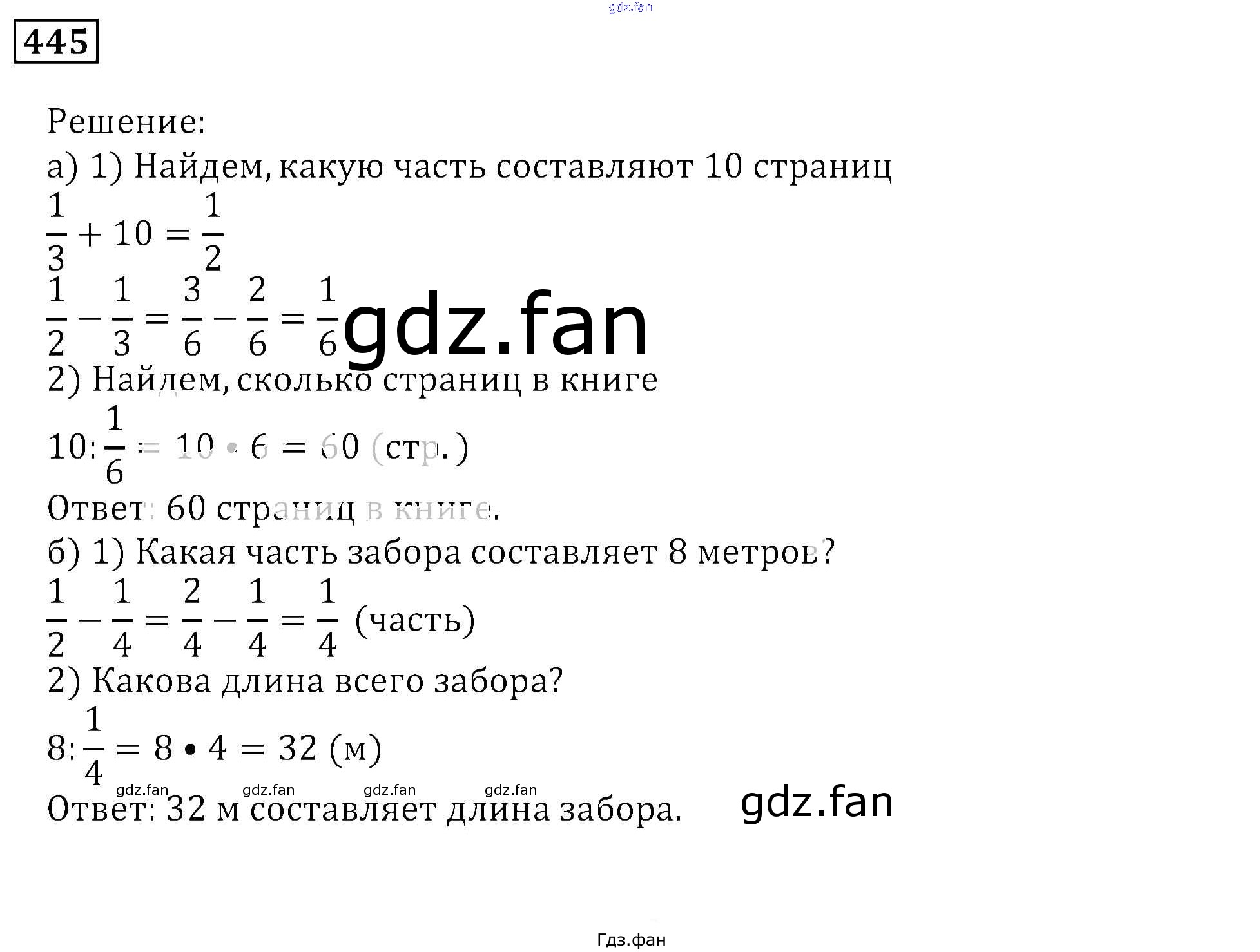 Проверка домашнего задания всегда занимает большое количество времени. На помощь приходит ГДЗ фан по Математике пятого класса. Здесь собраны популярные ответы на 445 (стр. 64) Математика 5 класс задачник Бунимович
