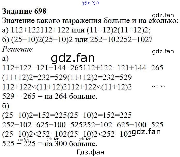 Проверка домашнего задания всегда занимает большое количество времени. На помощь приходит ГДЗ фан по Математике пятого класса. Здесь собраны популярные ответы на 698 (стр. 179) Математика 5 класс Дорофеев Г.В.