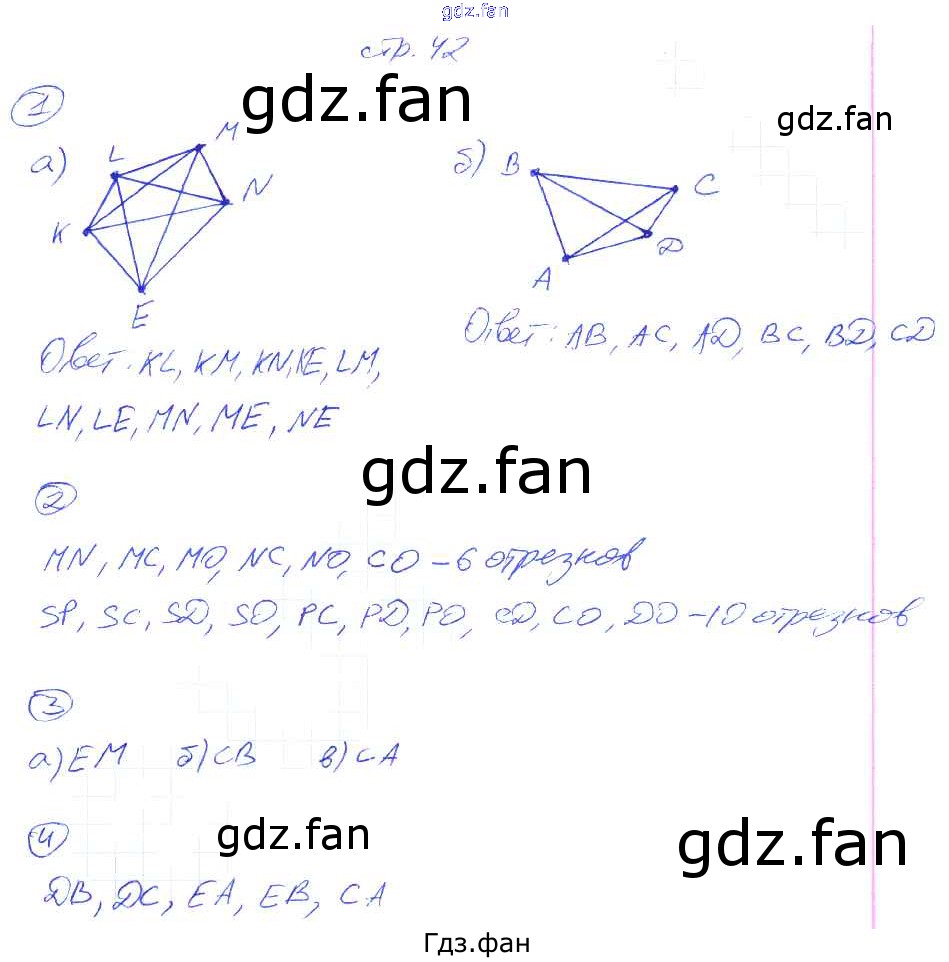 Проверка домашнего задания всегда занимает большое количество времени. На помощь приходит ГДЗ фан по Математике пятого класса. Здесь собраны популярные ответы на 42 (§2.1. Прямая. Луч. Отрезок № 1, 2, 3, 4) Математика 5 класс рабочая тетрадь Ерина Т.М. (к новому уч. Никольского С.М.)