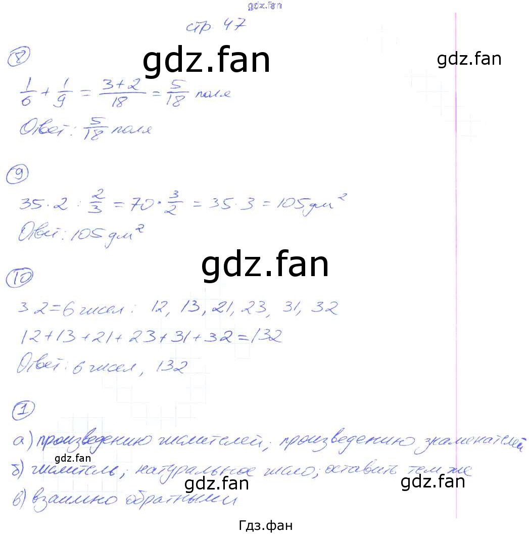 Проверка домашнего задания всегда занимает большое количество времени. На помощь приходит ГДЗ фан по Математике пятого класса. Здесь собраны популярные ответы на 47 (№ 8, 9, 10. §4.9. Умножение дробей № 1) Математика 5 класс рабочая тетрадь Ерина Т.М. (к новому уч. Никольского С.М.)