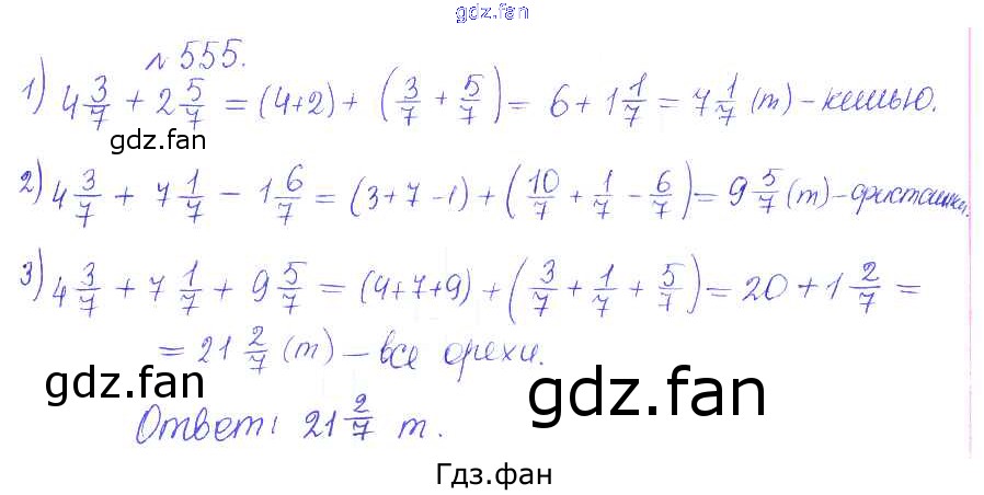 Проверка домашнего задания всегда занимает большое количество времени. На помощь приходит ГДЗ фан по Математике пятого класса. Здесь собраны популярные ответы на 555 (стр. 63) Математика 5 класс сборник задач и упражнений Гамбарин В.Г.
