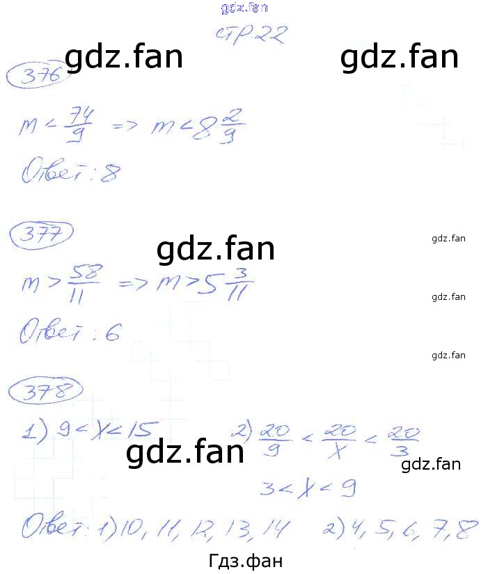 Проверка домашнего задания всегда занимает большое количество времени. На помощь приходит ГДЗ фан по Математике пятого класса. Здесь собраны популярные ответы на 22 (№ 376, 377, 378) Математика 5 класс рабочая тетрадь Мерзляк А.Г.