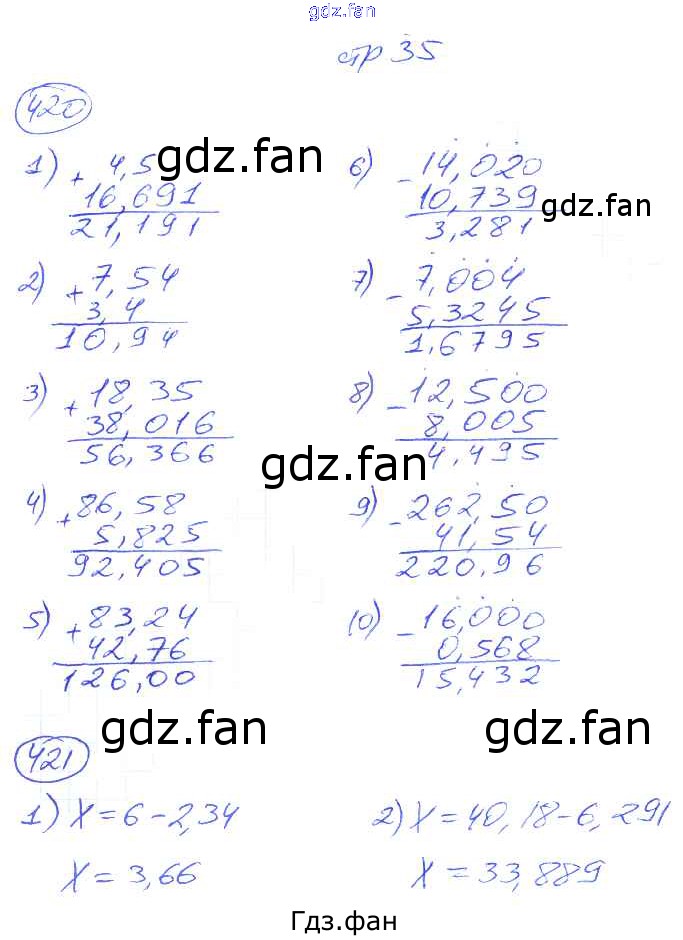 Проверка домашнего задания всегда занимает большое количество времени. На помощь приходит ГДЗ фан по Математике пятого класса. Здесь собраны популярные ответы на 35 (№ 420, 421) Математика 5 класс рабочая тетрадь Мерзляк А.Г.