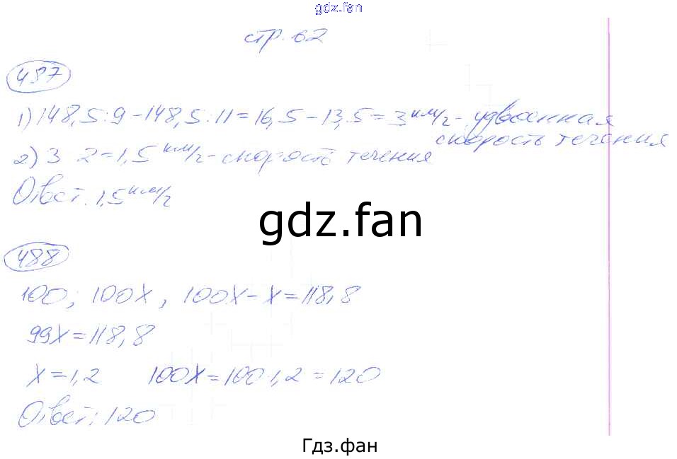 Проверка домашнего задания всегда занимает большое количество времени. На помощь приходит ГДЗ фан по Математике пятого класса. Здесь собраны популярные ответы на 62 (№ 487, 488) Математика 5 класс рабочая тетрадь Мерзляк А.Г.