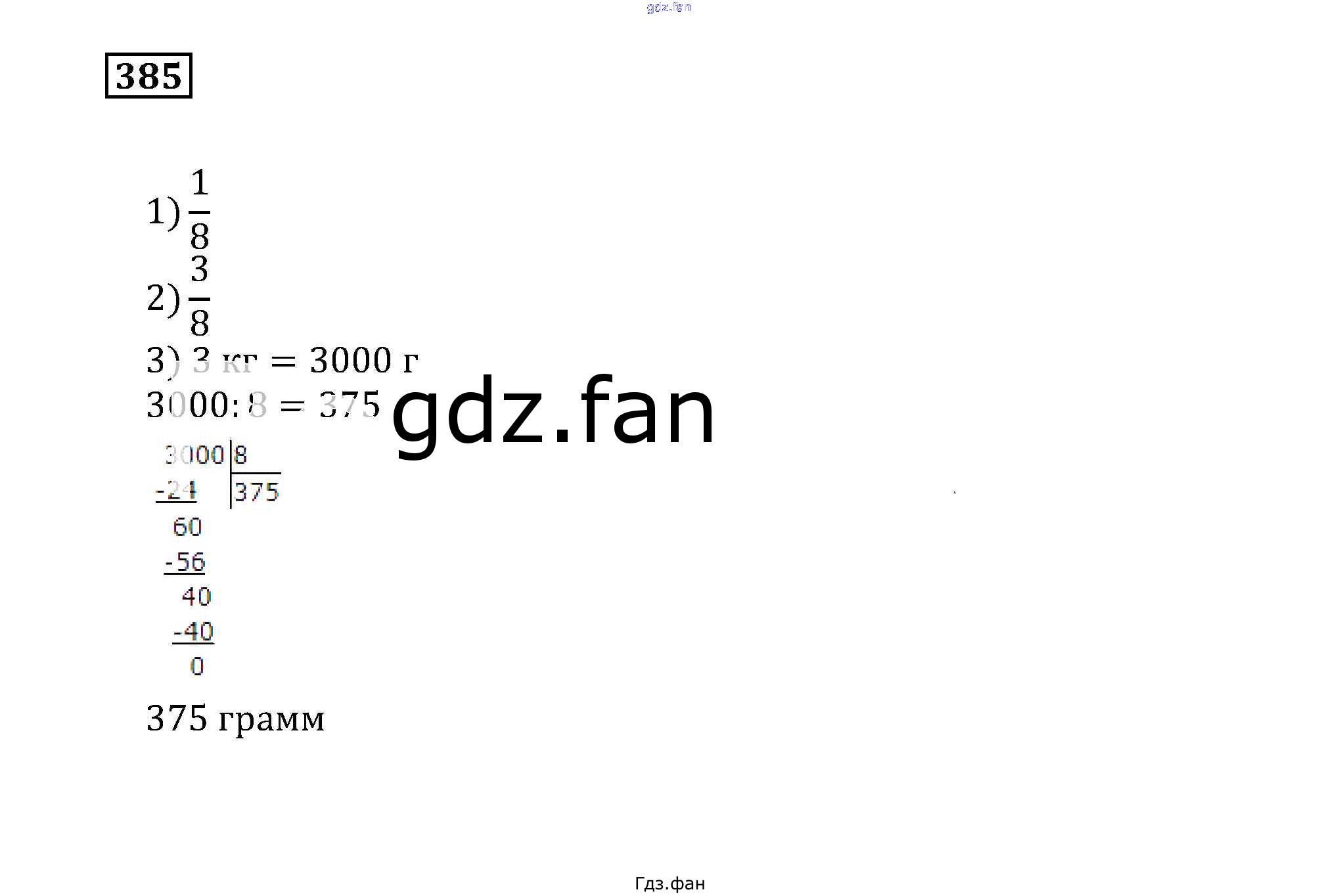 Проверка домашнего задания всегда занимает большое количество времени. На помощь приходит ГДЗ фан по Математике пятого класса. Здесь собраны популярные ответы на 385 (стр. 126) Математика 5 класс Муравин