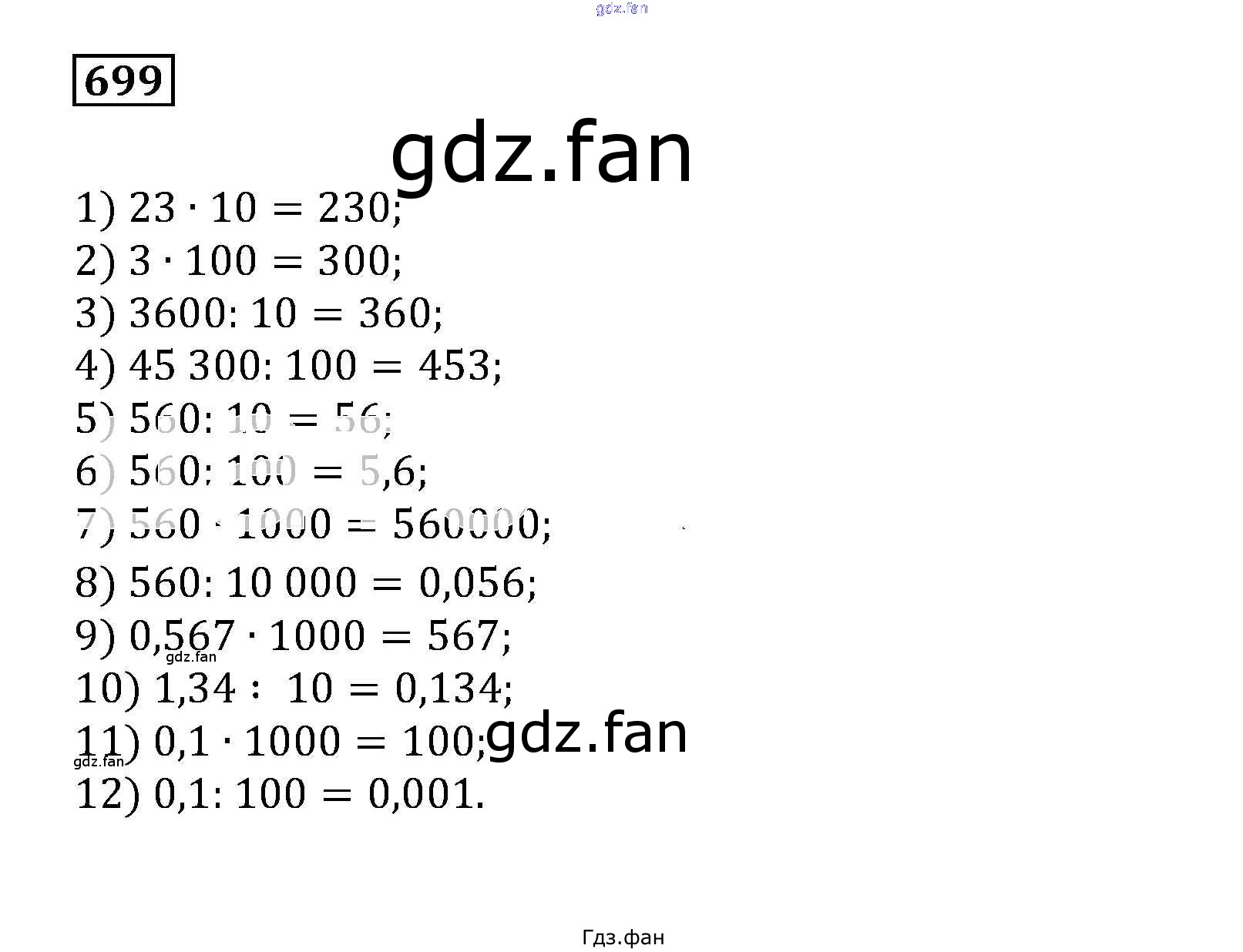 Проверка домашнего задания всегда занимает большое количество времени. На помощь приходит ГДЗ фан по Математике пятого класса. Здесь собраны популярные ответы на 699 (стр. 219) Математика 5 класс Муравин