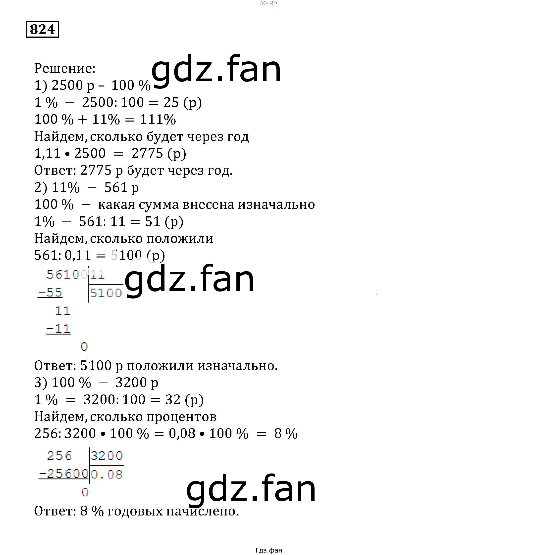 Проверка домашнего задания всегда занимает большое количество времени. На помощь приходит ГДЗ фан по Математике пятого класса. Здесь собраны популярные ответы на 824 (стр. 250) Математика 5 класс Муравин