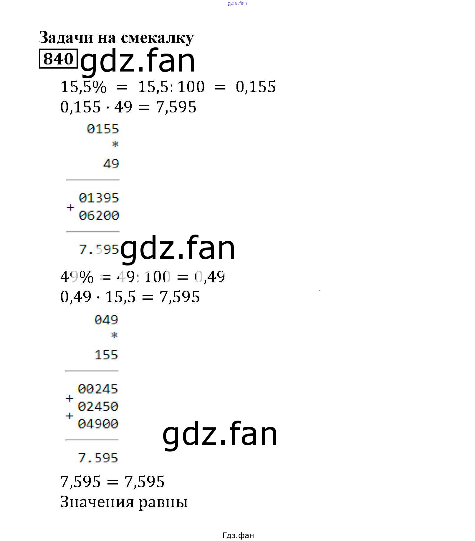 Проверка домашнего задания всегда занимает большое количество времени. На помощь приходит ГДЗ фан по Математике пятого класса. Здесь собраны популярные ответы на 840 (стр. 253) Математика 5 класс Муравин