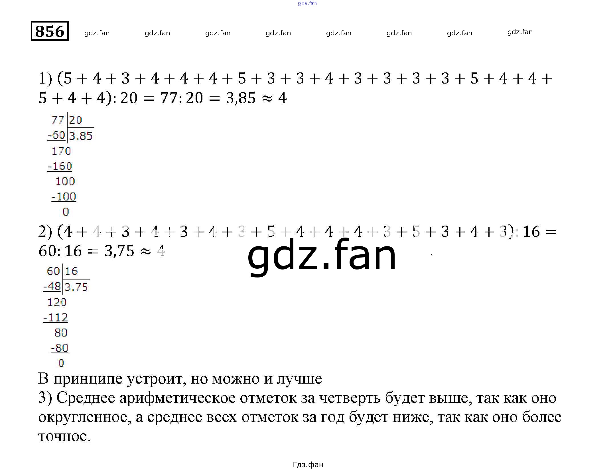 Проверка домашнего задания всегда занимает большое количество времени. На помощь приходит ГДЗ фан по Математике пятого класса. Здесь собраны популярные ответы на 856 (стр. 257) Математика 5 класс Муравин