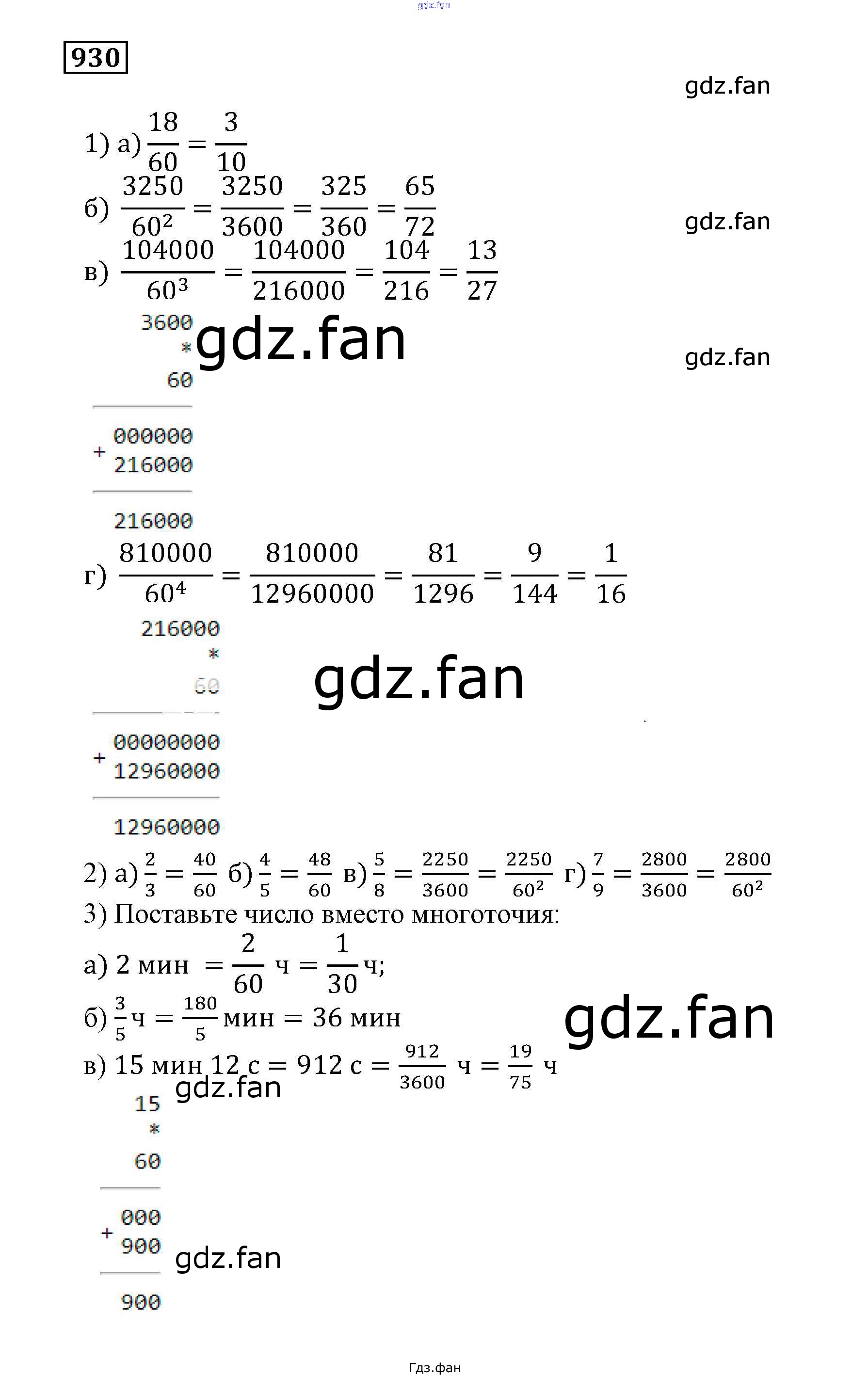 Проверка домашнего задания всегда занимает большое количество времени. На помощь приходит ГДЗ фан по Математике пятого класса. Здесь собраны популярные ответы на 930 (стр. 277) Математика 5 класс Муравин