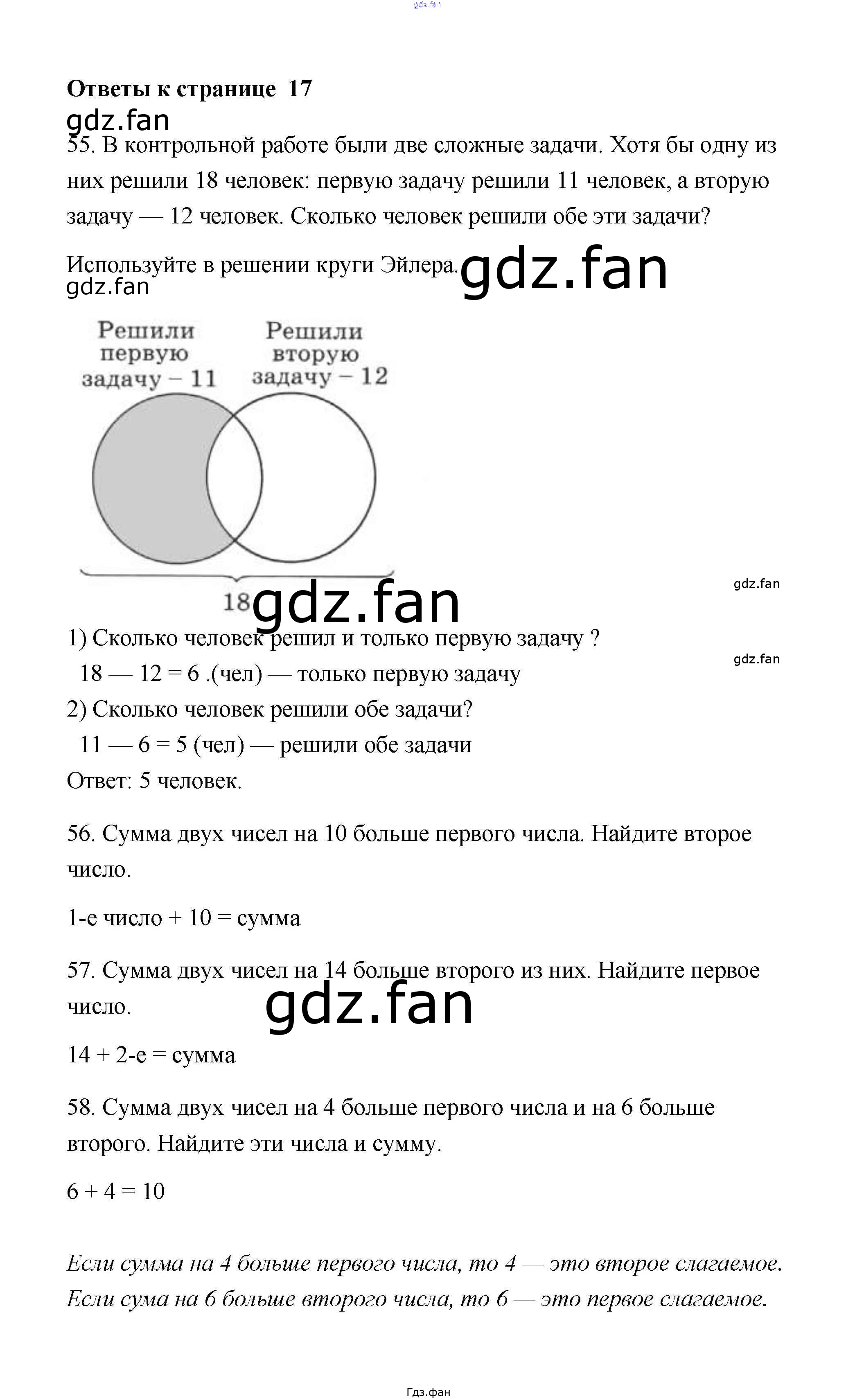 Проверка домашнего задания всегда занимает большое количество времени. На помощь приходит ГДЗ фан по Математике пятого класса. Здесь собраны популярные ответы на 17 (№ 55, 56, 57, 58) Математика 5 класс рабочая тетрадь Потапов М.К.