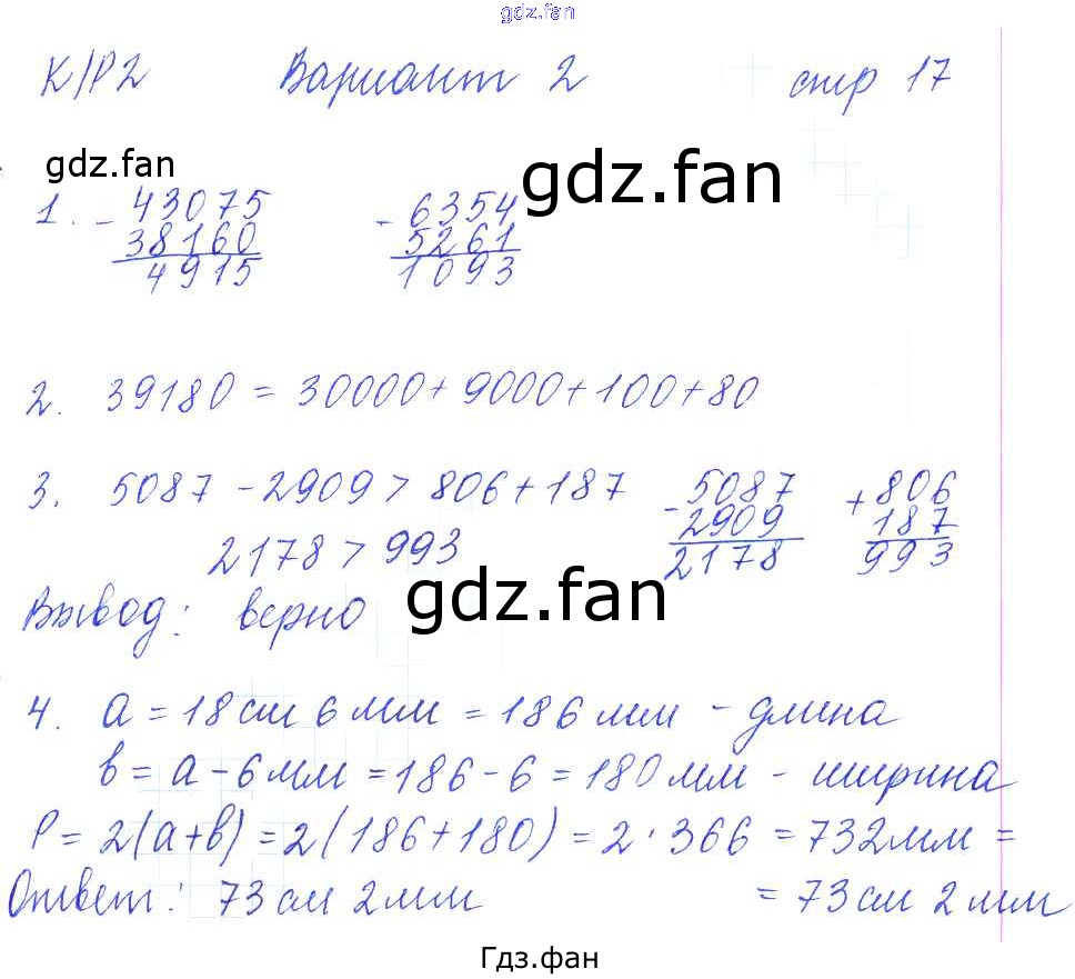 Проверка домашнего задания всегда занимает большое количество времени. На помощь приходит ГДЗ фан по Математике пятого класса. Здесь собраны популярные ответы на 17 (Вариант 2 № 1, 2, 3, 4) Математика 5 класс рабочая тетрадь для контрольных работ Рудницкая В.Н. (к уч. Виленкина Н.Я.)