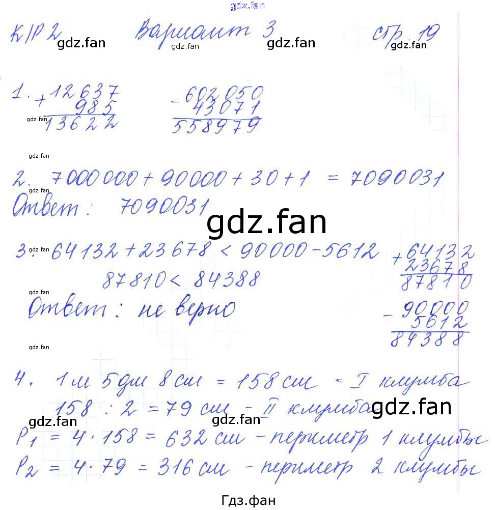 Проверка домашнего задания всегда занимает большое количество времени. На помощь приходит ГДЗ фан по Математике пятого класса. Здесь собраны популярные ответы на 19 (Вариант 3 № 1, 2, 3, 4) Математика 5 класс рабочая тетрадь для контрольных работ Рудницкая В.Н. (к уч. Виленкина Н.Я.)