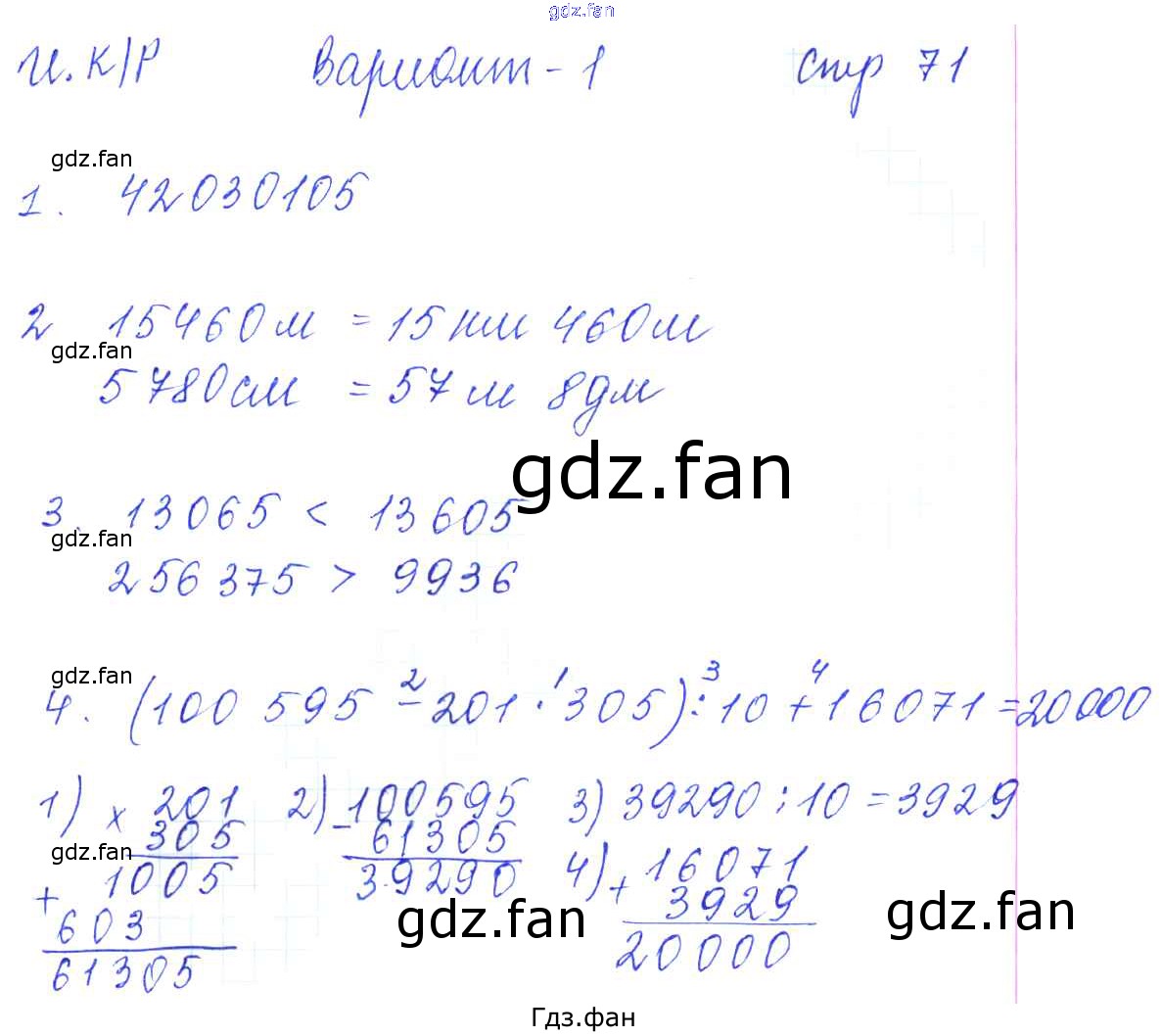 Проверка домашнего задания всегда занимает большое количество времени. На помощь приходит ГДЗ фан по Математике пятого класса. Здесь собраны популярные ответы на 71 (Итоговая контрольная работа за первое полугодие. Вариант 1 № 1, 2, 3, 4) Математика 5 класс рабочая тетрадь для контрольных работ Рудницкая В.Н. (к уч. Виленкина Н.Я.)