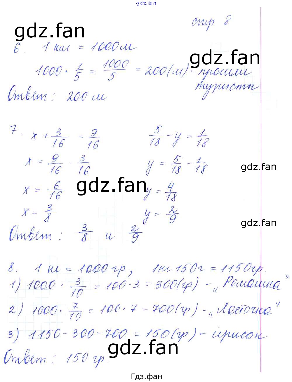 Проверка домашнего задания всегда занимает большое количество времени. На помощь приходит ГДЗ фан по Математике пятого класса. Здесь собраны популярные ответы на 8 (№ 6, 7, 8) Математика 5 класс рабочая тетрадь для контрольных работ Рудницкая В.Н. (к уч. Виленкина Н.Я.)