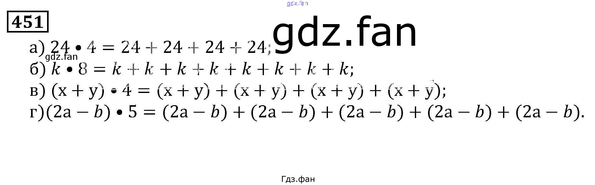 Проверка домашнего задания всегда занимает большое количество времени. На помощь приходит ГДЗ фан по Математике пятого класса. Здесь собраны популярные ответы на 451 (стр. 72) Математика 5 класс Виленкин Н.Я.