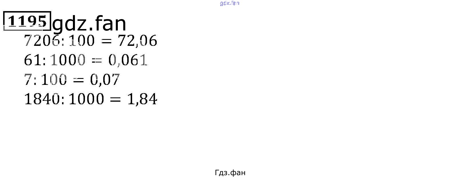 Проверка домашнего задания всегда занимает большое количество времени. На помощь приходит ГДЗ фан по Математике пятого класса. Здесь собраны популярные ответы на 1195 (стр. 189) Математика 5 класс Виленкин Н.Я.