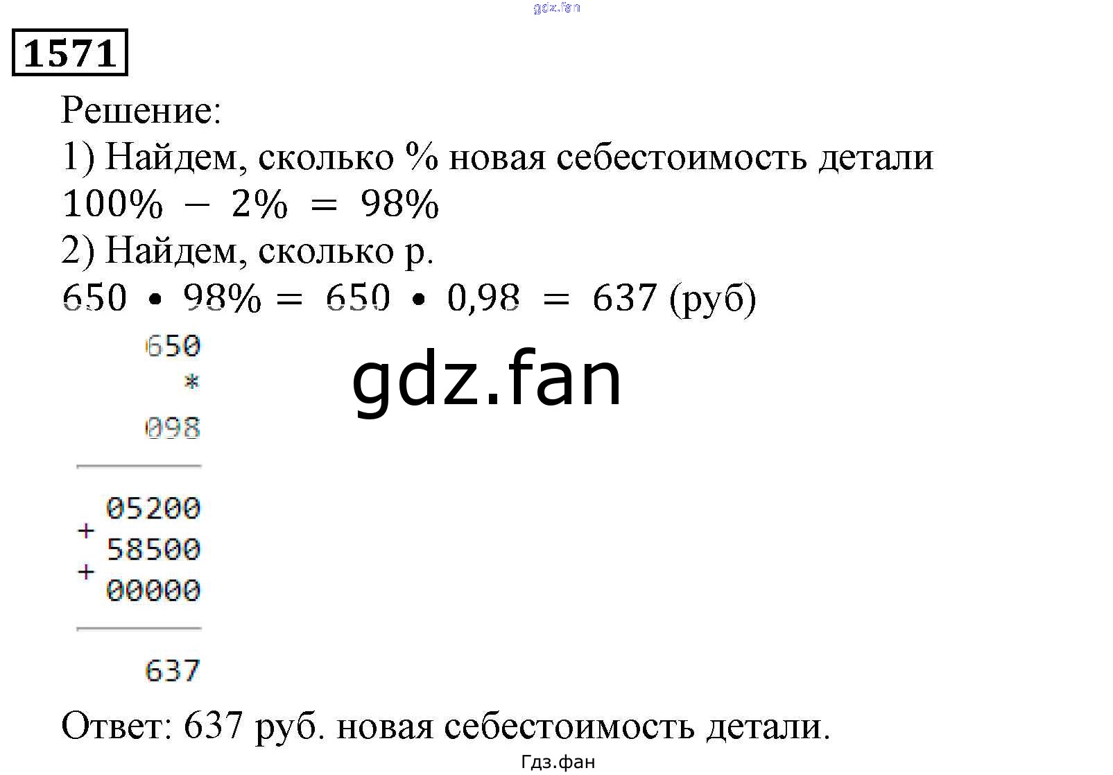 Проверка домашнего задания всегда занимает большое количество времени. На помощь приходит ГДЗ фан по Математике пятого класса. Здесь собраны популярные ответы на 1571 (стр. 239) Математика 5 класс Виленкин Н.Я.
