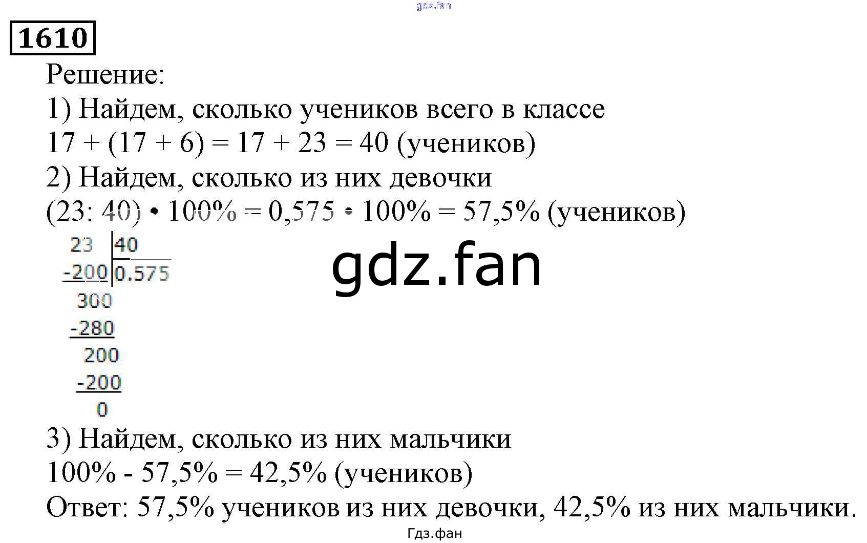 Проверка домашнего задания всегда занимает большое количество времени. На помощь приходит ГДЗ фан по Математике пятого класса. Здесь собраны популярные ответы на 1610 (стр. 242) Математика 5 класс Виленкин Н.Я.